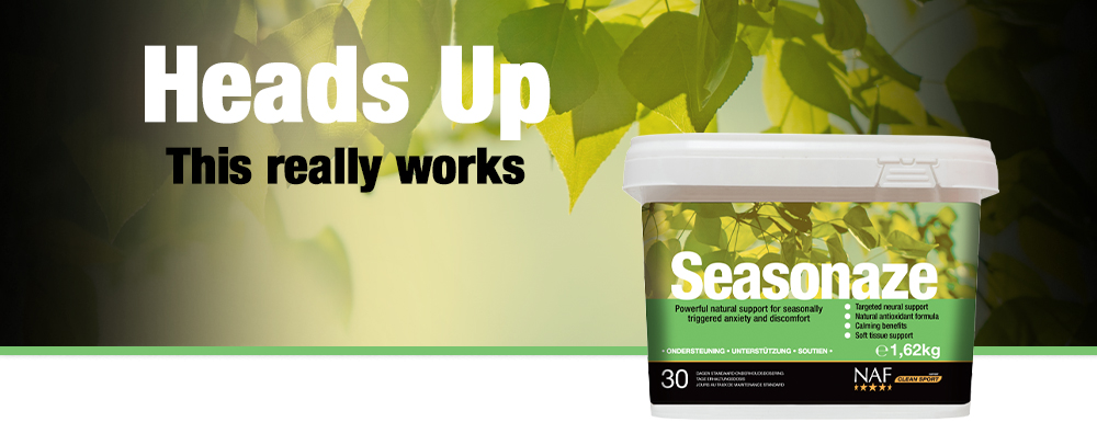 *Seasonaze wurde im Rahmen einer Verhaltensstudie von NAF im Sommer 2019 bei 12 betroffenen Pferden erprobt. Über 77% der Studienteilnehmer empfehlen das Produkt für saisonal betroffene Pferde weiter.
