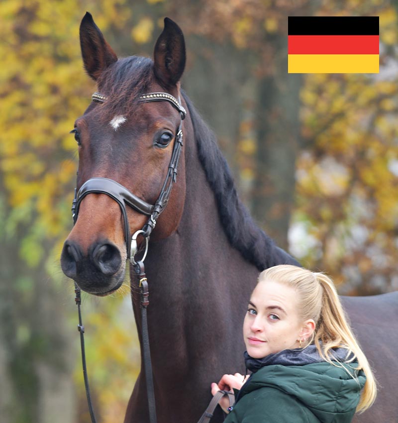 "Oestress er en sand velsignelse for Calimera. Hun er en frisk hoppe og takket være Oestress kan vi igen ride sammen i harmoni, og hun er mindre stresset ved konkurrencer. Calimera er en smuk hest med meget personlighed!"