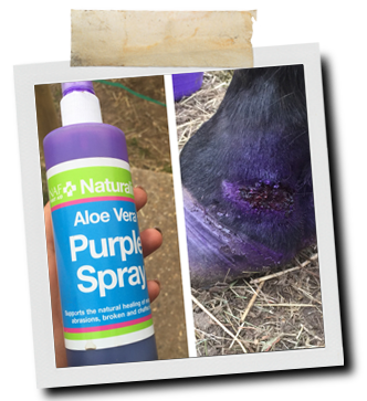 I brought my horse H in from the field and I could see he had hurt his near fore leg. The vet was called out and he had a nasty cut to his bulb of his hoof, he had a dressing put on and was instructed to go on box rest. After three weeks of dressing changes and many packets of NAF Minty Treats in his snack ball to keep him occupied in the stable, the final dressing came off. Although the leg had reduced in size, the wound was very exposed, so he had to remain on box rest for a while longer. I decided to try NAF Aloe Vera Purple Spray as I had used it in the past for minor cuts with success. Literally within 24 hours of using it I noticed the difference, the area was much improved and he seemed more comfortable when I was touching it. He is now back out in his paddock in the day (on dry days) and I am just so impressed with the Purple Spray - mega product! I honestly can't recommend NAF products highly enough. I am never disappointed with the results - H especially likes the Minty Treats and whenever I fill his snack ball up he gets really excited! Naomi Nunn